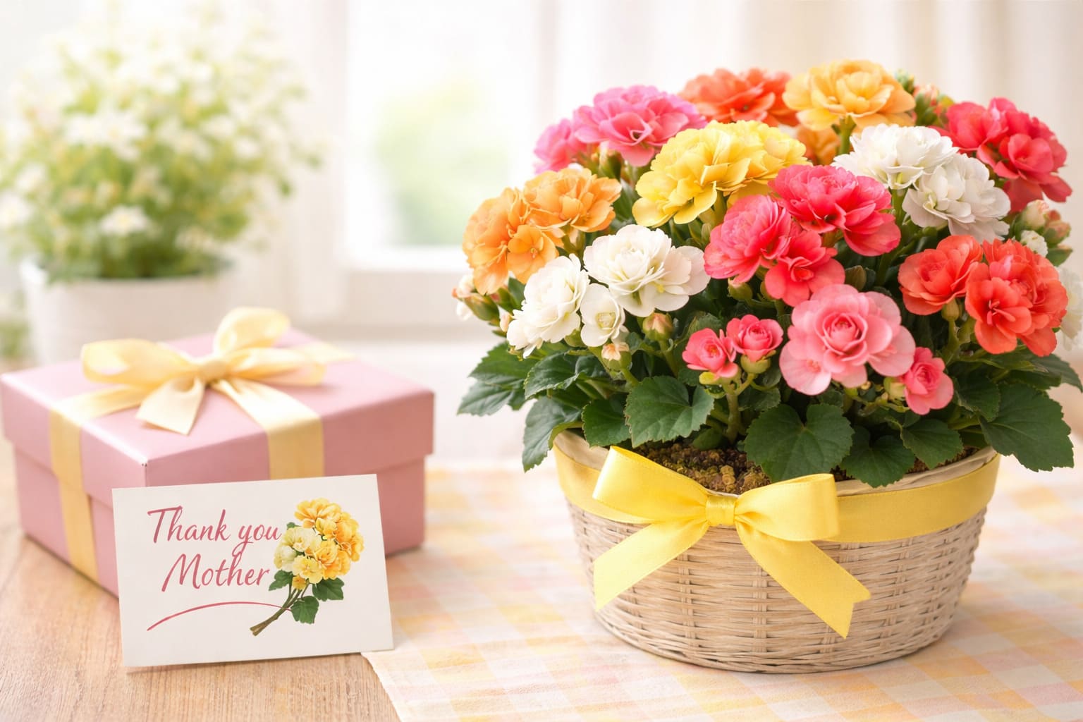 リーガースベゴニアの魅力は、花の重なりが華やかで、贈ったときに明るい印象を作りやすいことです。明るい室内で管理しやすく、母の日のプレゼントにも合わせやすいです。花ものらしい存在感があり、玄関やリビングにも飾りやすいです。