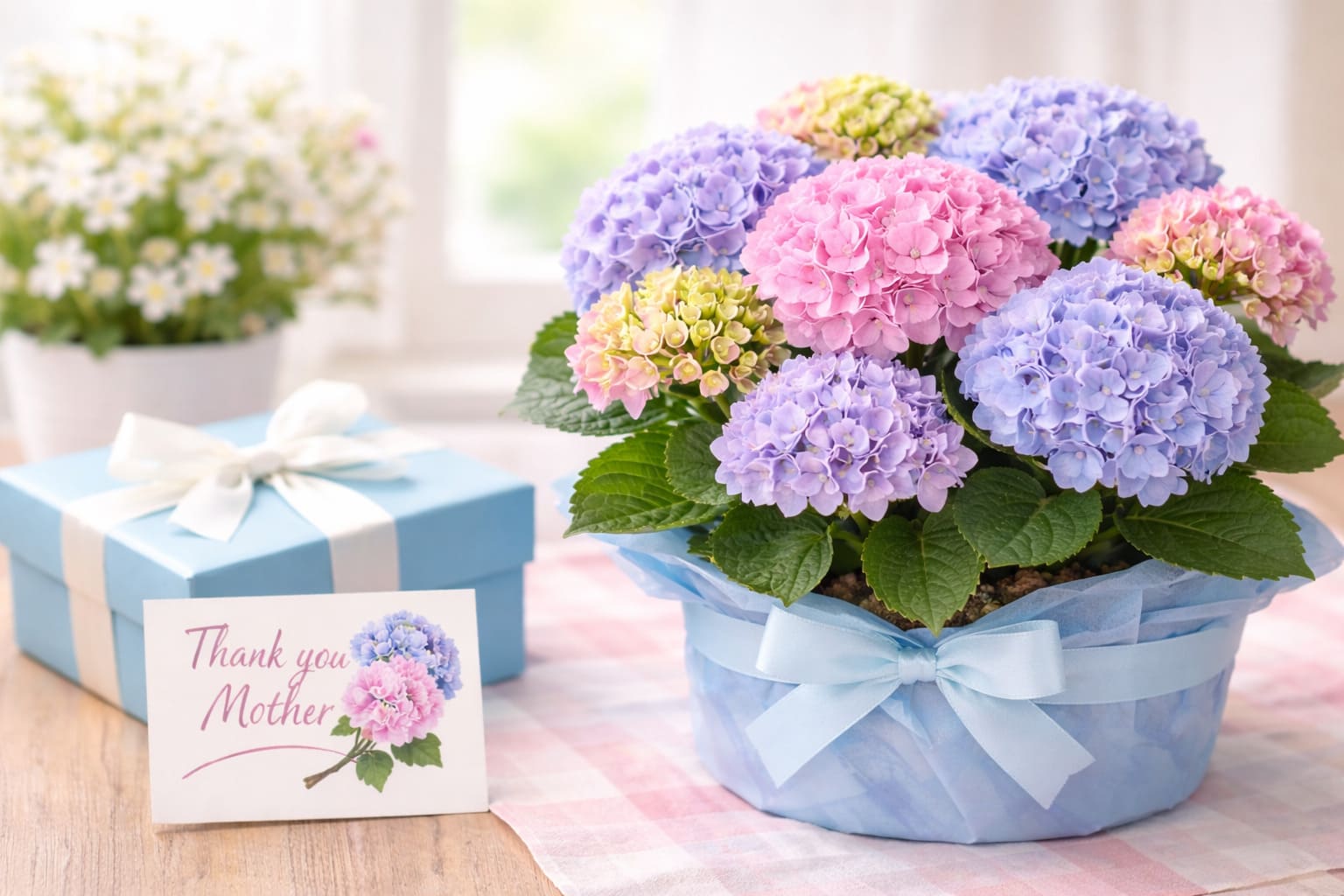母の日のプレゼントに最適な育てやすい鉢植えとして、紫陽花は見映えを大切にしたい方に向いています。花房にボリュームがあり、贈った瞬間に華やかな印象を作りやすいです。母の日らしい特別感を出したいときにも、候補に入れやすい花です。